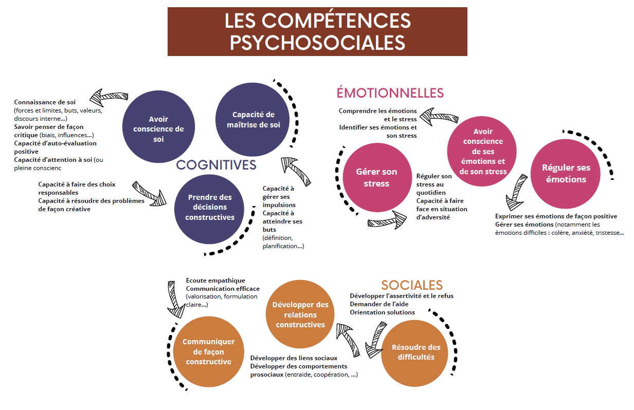 Les compétences psychosociales sont la capacité d'une personne à répondre avec efficacité aux exigences et aux épreuves de la vie quotidienne.